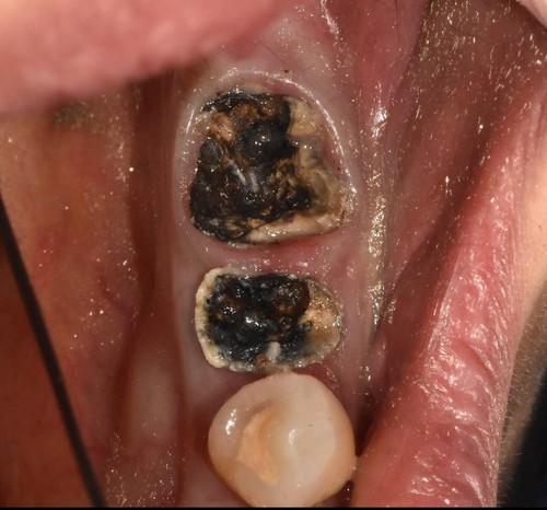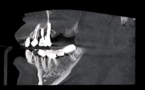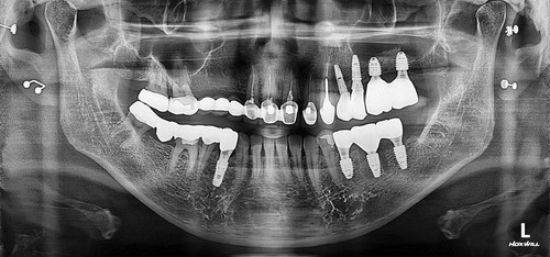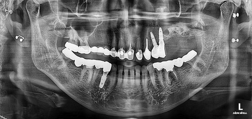 임플란트를 식립한 후에는 통상적으로는 3개월 후에 임플란트 보철물이 들어가는데 환자분의 사정으로 치과 내원을 못 하셔서 약 5개월 후에 오셨는데 왼쪽 아래 치아의 뿌리 부위의 충치가 발견되어서 아래 치아는 발치하면서 식립하는 즉시식립을 해 드렸습니다.