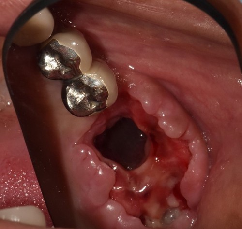 이번에 소개해 드릴 환자분은 발치후 상악동이 천공 되어서 입안의 물이 코로 들어가고 코로 바람이 새는 증상이 있어서 발치한 치과에서 비흡수성 차폐막으로 막은 상태로 오셨습니다.